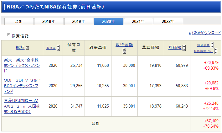 最後に、今現在の私が行っている つみたてNISA の実績を紹介します。